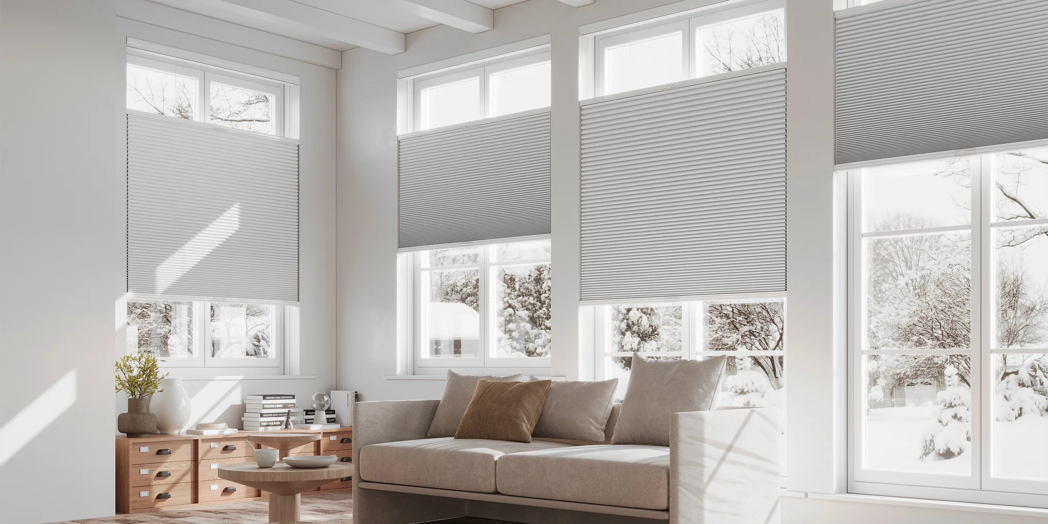 Cellular shades are engineered for maximum energy efficiency, using a honeycomb-shaped structure that traps air to reduce heat transfer, minimize drafts, and improve insulation year-round. Designed for light filtering or room darkening, they offer customizable privacy and light control while helping lower energy costs. With cordless, motorized, and smart-home compatible options, cellular shades provide a modern, stylish solution for enhancing comfort in any space.